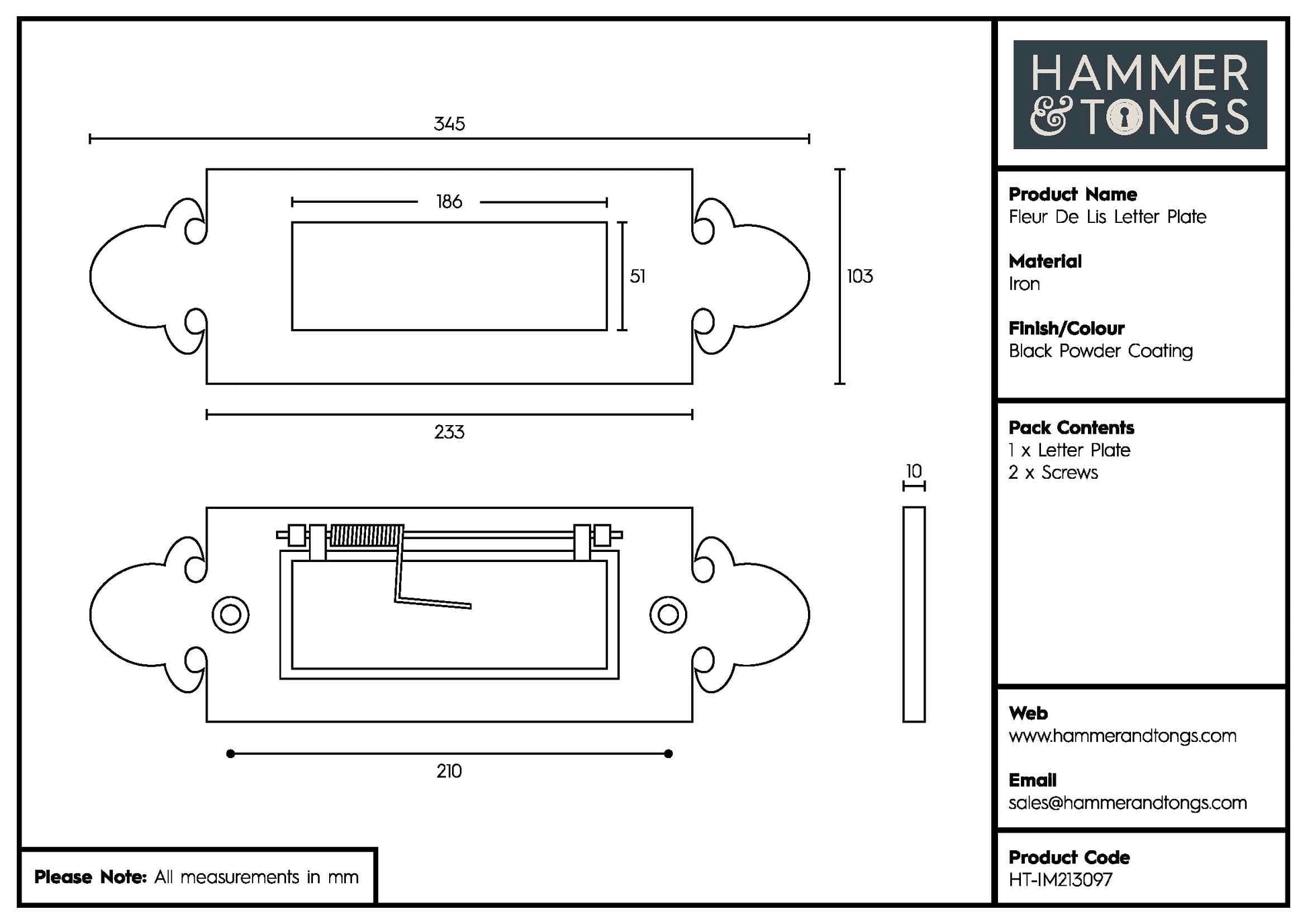 Give your doors an authentic antique finish with our Hammer & Tongs Fleur De Lis Letter Plate.