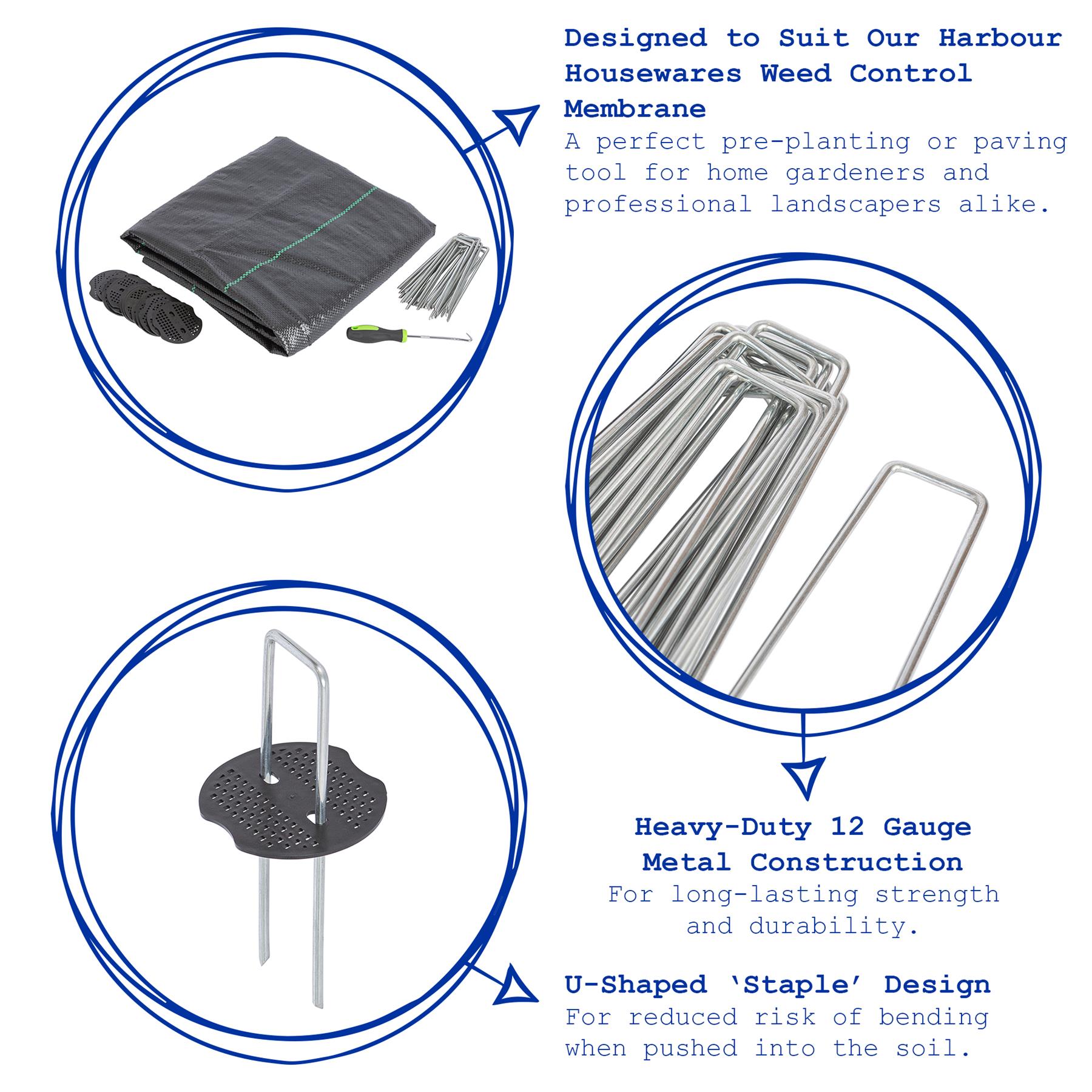These heavy-duty 12 gauge metal pegs will help secure your control fabric in place, preventing weed seeds from germinating and taking root whilst still allowing water, air and nutrients to pass through, thereby ensuring that your soil and other, desirable, plants are kept vibrant and healthy.