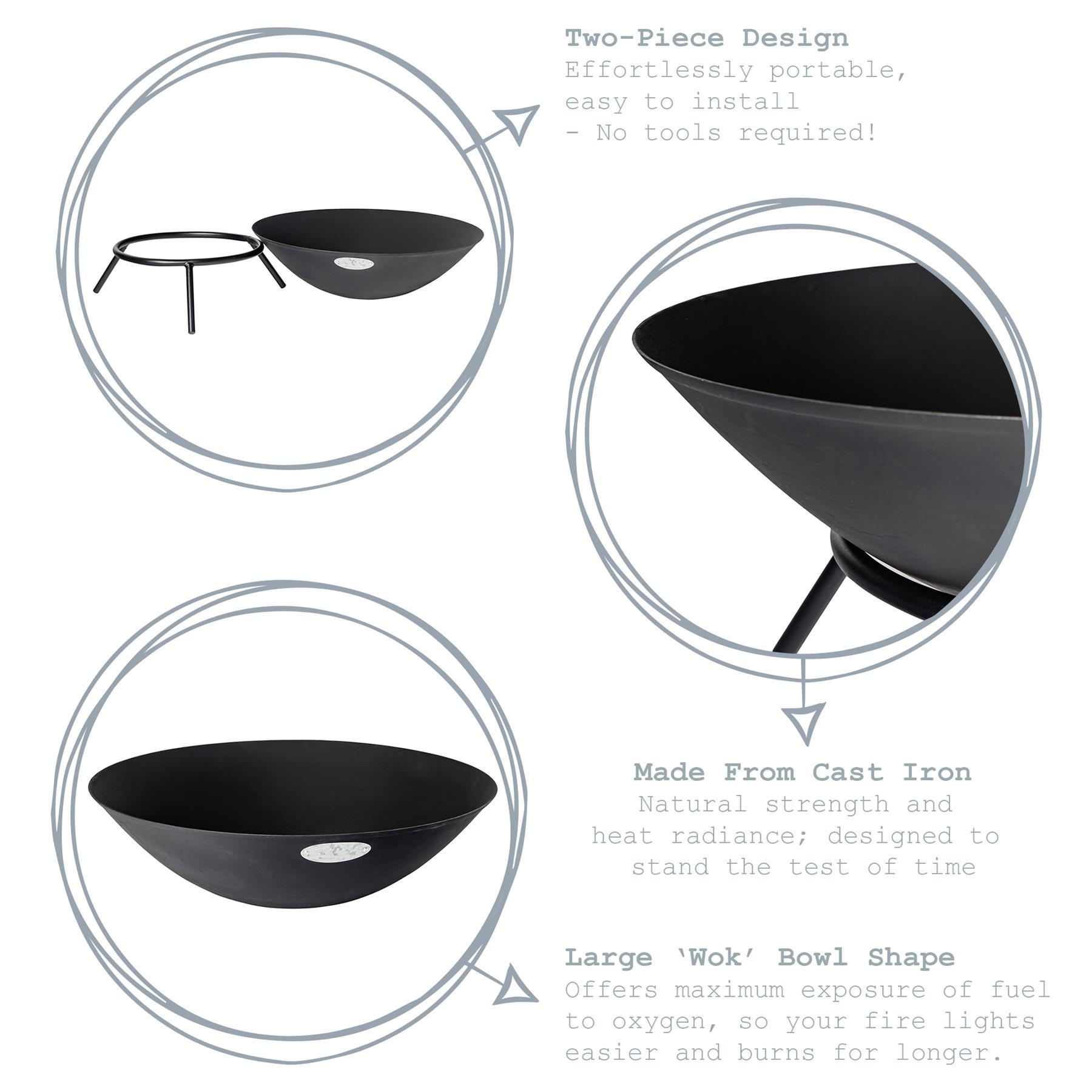 Crafted from durable cast iron,our classic fire pit offers excellent heat radiation, creating the perfect space for friends and family to gather round. Classic industrial styling creates a sure-fire centrepiece in any back garden or terrace. The large bowl capacity offers maximum room for your fuel of choice while aiding air flow, keeping home fires burning for longer.