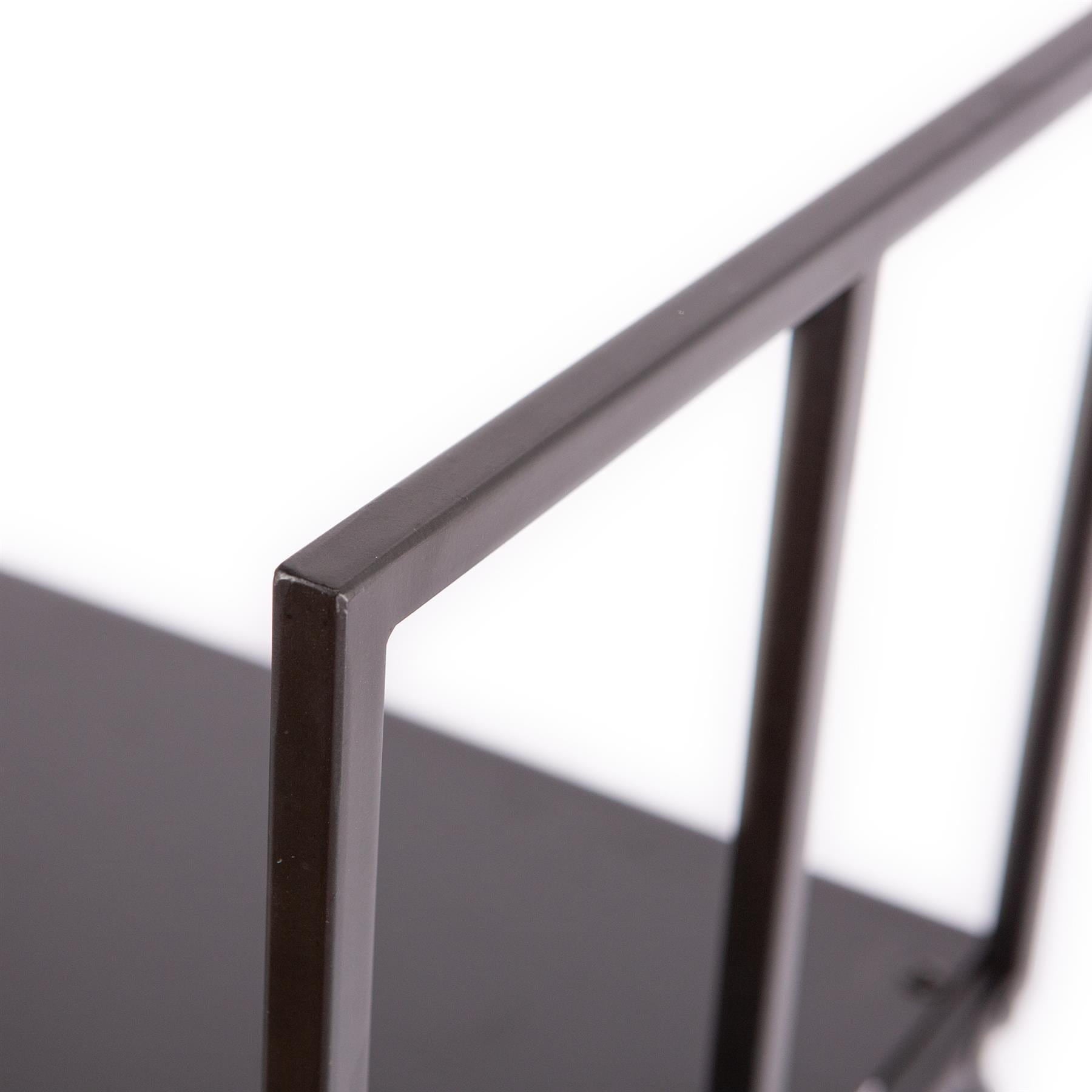 The minimal, open design offers quick and convenient access to your fireplace fuel, while the sleek black finish adds a modern, industrial accent to any interior.